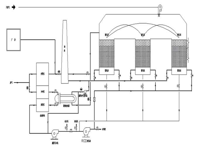 Efficiently concentrate low concentration high air volume organic waste gas to 10-15 times, heat the concentrated organic waste gas to 760 ℃, and oxidize and decompose the V0C in the waste gas into harmless CO2 and H2O; The heat of the high-temperature gas during oxidation is stored in the heat storage body, which is used to preheat the newly introduced organic waste gas and save the fuel consumption required for heating.