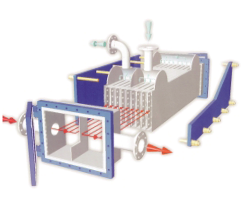 The fully welded wide channel plate heat exchanger belongs to the inter wall heat exchanger. The structural form of the heat exchanger adopts a combination mode of wide and narrow channels, with wide channels for material and narrow channels for cooling medium. At the same time, different channel spacing can be designed and manufactured according to the different operating medium parameters. Normally, the fluid channel formed on the wide channel side is called the plate side, and the fluid channel formed on the narrow channel side is called the tube side. When the plate side and tube side pass through two different temperature fluids, the higher temperature fluid transfers heat to the lower temperature fluid through the heat exchange plate, the higher temperature fluid is cooled, and the lower temperature fluid is heated, thereby achieving the purpose of the two fluid heat exchange process.